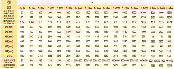 6.K系列反应罐主体尺寸符合HG/T2371-92、GB/T 25027—2010标准,并在此基础上进行了改进。